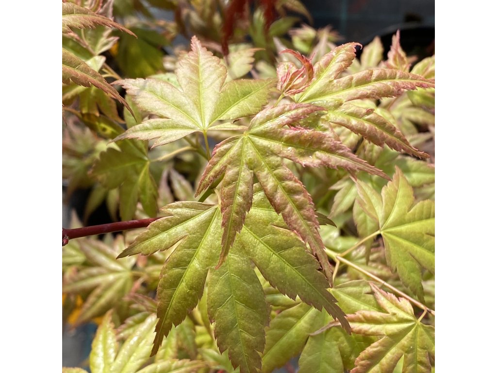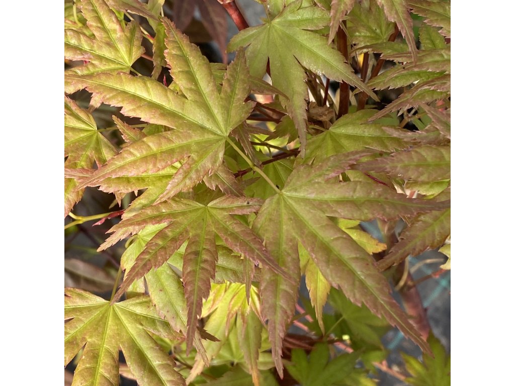 Opadavý javor dlanitolistý s dekorativně proměnlivým listem, který dělá z této odrůdy zajímavý prvek zahrady. Na jaře nové listy vyrážejí broskvově‑růžové až meruňkové, postupně během léta přechází v tmavě zelené s bronzovými nádechy, aby na podzim znovu zazářily jasně červenou barvou. Listy bývají hluboce dělené s 5–7 laloky, jejich textura je jemná a přidává kompozici živý charakter. V dospělosti obvykle dosahuje přibližně 1,5–2,5 m výšky a podobné šířky jako malý strom nebo keř vhodný i do menších zahrad. Výrazné sezónní zbarvení listů a kompaktní růst dělají tento kultivar oblíbeným pro dekorativní výsadby.