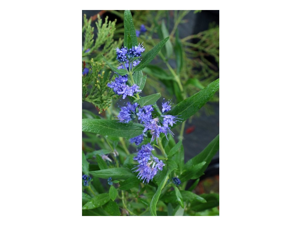 Caryopteris x clandonensis 'Kew Blue' - ořechoplodec clandonský je atraktivní nízký polokeř dorůstající výšky 50-70 cm. Vyniká tmavě modrými květy, které se objevují od poloviny léta a zdobí rostlinu až do podzimu. Šedozelené aromatické listy dodávají rostlině zajímavý vzhled i mimo období kvetení. Ořechoplodec je ideální volbou pro vytvoření kořenové přikrývky.