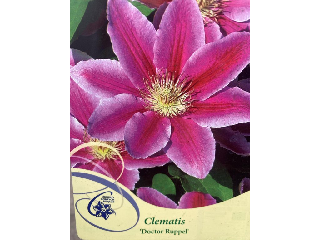 Clematis Dr. Ruppel (plamének) je nádherná popínavá rostlina, která dosahuje výšky 2-2,5 m. Vyniká svými velkými, jednoduchými květy o průměru 10-15 cm, které mají růžově purpurovou barvu s výrazným bílým okrajem. Bohatě kvete od července do srpna, což z ní činí atraktivní letní okrasu zahrady.