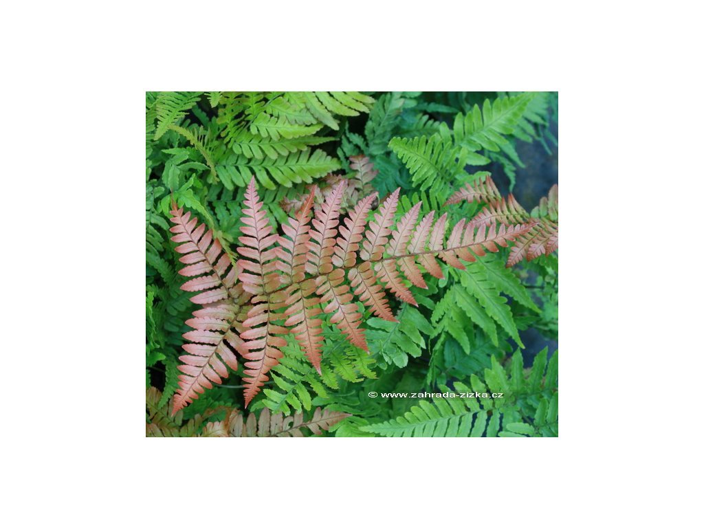 Dryopteris erythrosora, známá také jako kapraď japonská nebo měděná, je dekorativní kapradina pocházející z východní Asie. Vyniká atraktivními, měděně zbarvenými mladými listy, které postupně přecházejí do sytě zelené barvy. Tato trsnatá, pomalu rostoucí rostlina dorůstá výšky 40–60 cm a vytváří kompaktní habitus vhodný pro stinné partie zahrady, podrosty i trvalkové záhony.
