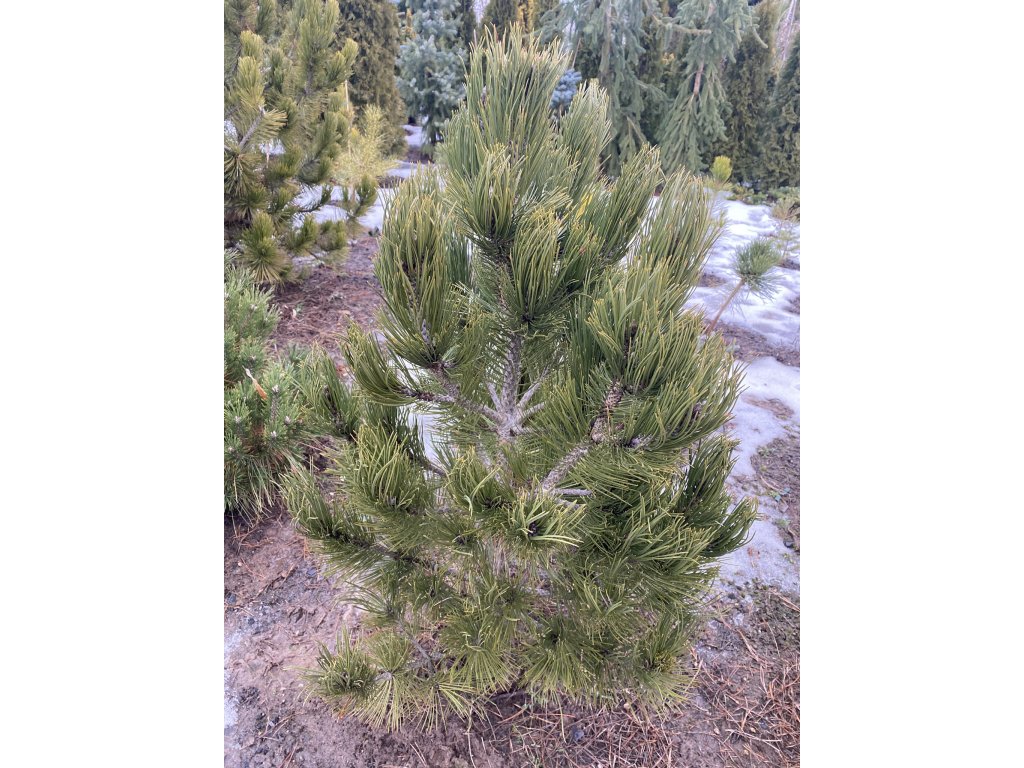 Pinus leucodermis ‘Compact Gem’ je zakrslá, hustě rostoucí borovice balkánská s pravidelným, kompaktním tvarem koruny, která se s věkem mírně rozšiřuje. Jehlice jsou krátké, tuhé, svěže zelené, hustě uspořádané, což vytváří elegantní, dekorativní vzhled po celý rok a a výraznými bílými pupeny. V létě je ozdobená modrými šiškami, které dodávají rostlině další estetickou hodnotu. Po 10–15 letech dorůstá přibližně 1,5 m výšky a 1–1,2 m šířky, v dospělosti 3-4 m, díky kompaktnímu růstu je ideální i pro menší zahrady. Proč si ji vybrat: kompaktní růst, atraktivní modrozelené jehlice, celoroční dekorativní hodnota bez nutnosti řezu.