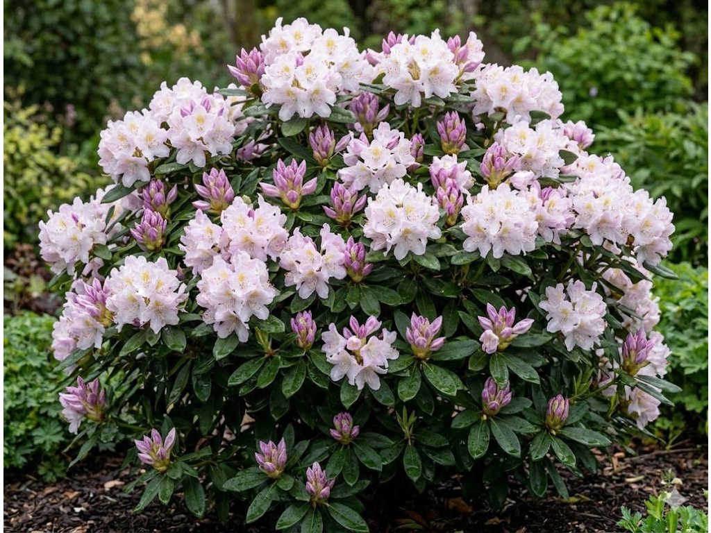 Rhododendron 'Gomer Waterer' je okouzlující odrůda pěnišníku, která se pyšní nádhernými květy v jemných odstínech růžové až bílé barvy. Tento stálezelený keř dorůstá výšky 1,5-2 metry a stejné šířky, což z něj činí ideální volbu pro menší i větší zahrady. Kvete od konce května do června, kdy se jeho kompaktní habitus pokryje velkými kulovitými květenstvími.