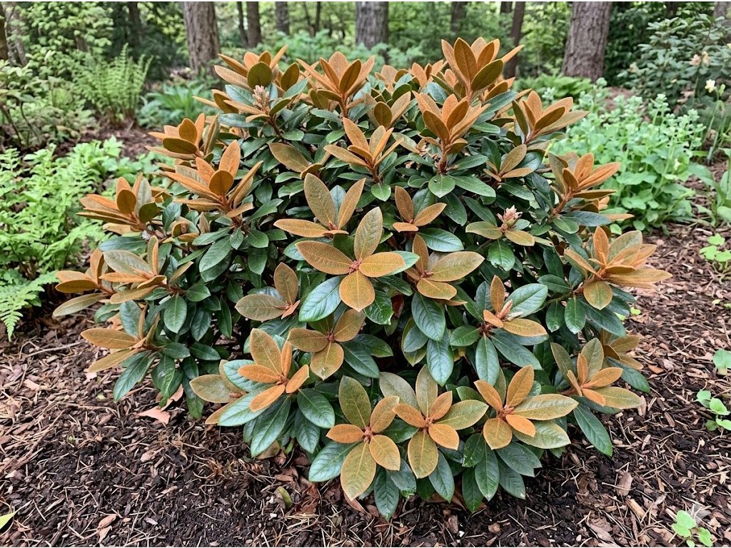 Rhododendron bureavii ’Robin’ je dekorativní, stálezelený rododendronový keř (typ druhu bureavii), který je ceněný pro kompaktní, hustý růst a zajímavé listy s výrazným kontrastem barev, typickým pro tuto botanickou skupinu. Listy jsou tmavě zelené, lesklé na svrchní straně a na spodní straně pokryté hustým rezavohnědým plstnatým povlakem, který je charakteristickým znakem tohoto druhu a vytváří dekorativní efekt po celý rok. Kultivar ‘Robin’ dorůstá obvykle 1–1,5 m výšky a podobné šířky, takže je ideální pro kompaktní výsadbu v zahradách a menších prostorech. Tento hybrid vykvétá na jaře (obvykle v duben–květen), kdy vytváří nápadné růžové až bledě růžové až bílé zvonkovité květy, které ladí s bohatým olistěním a doplňují celkový estetický dojem rostliny.