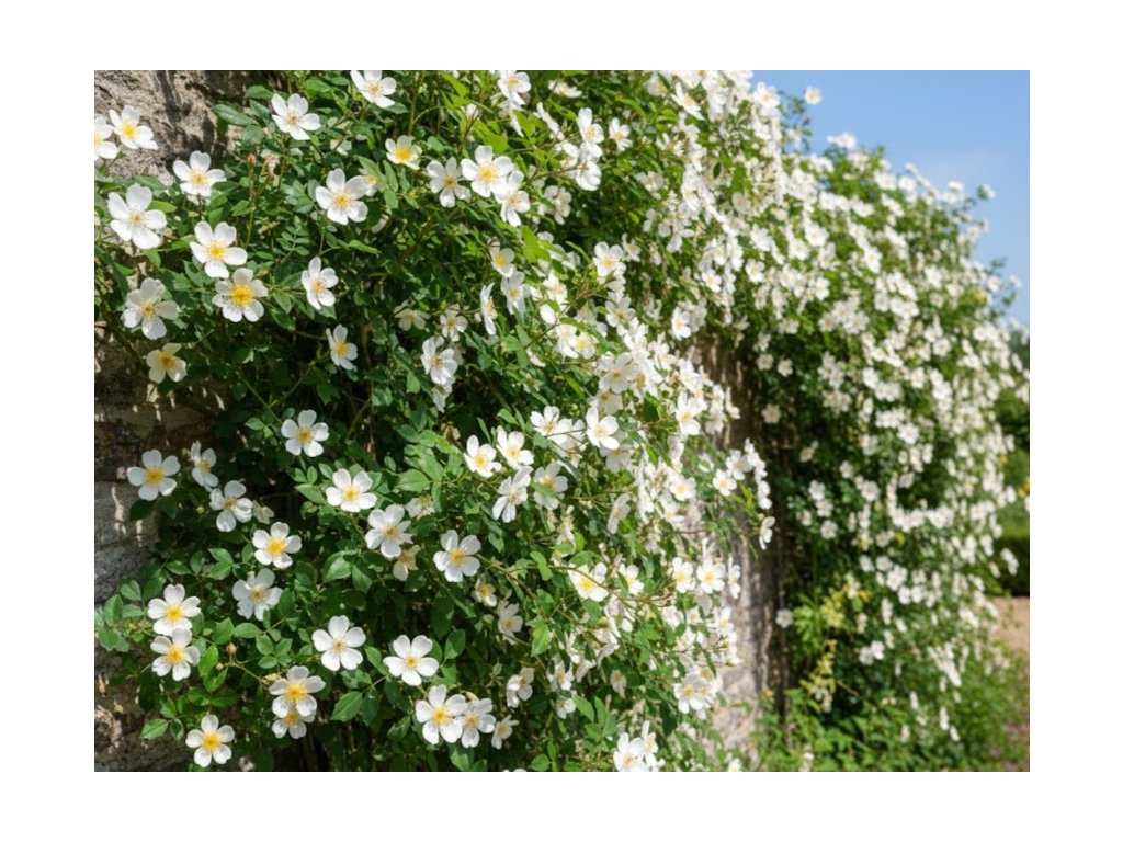 Tato růže je ideální pro velké zahrady, kde má dost prostoru na výškové a šířkové pnutí, a skvěle se uplatní při pokrytí zdí, pergol, oblouků, plotů i stromů. Ve volné krajině může tvořit působivý solitér či romantický prvek ve stylu anglické zahrady, zatímco její **bílá květenství a následné oranžovo-červené šípky poskytují dlouhé období dekorativního efektu od léta až do podzimu. Díky své velikosti se snadno kombinuje s trvalkami a dřevinami střední výšky, které ji mohou obklopit v přízemní části výsadby. Řez růže probíhá po odkvetení a využívá spíše vedení než silný zásah – vyvazují se hlavní výhony, aby růže směrovala tam, kam chceme.
