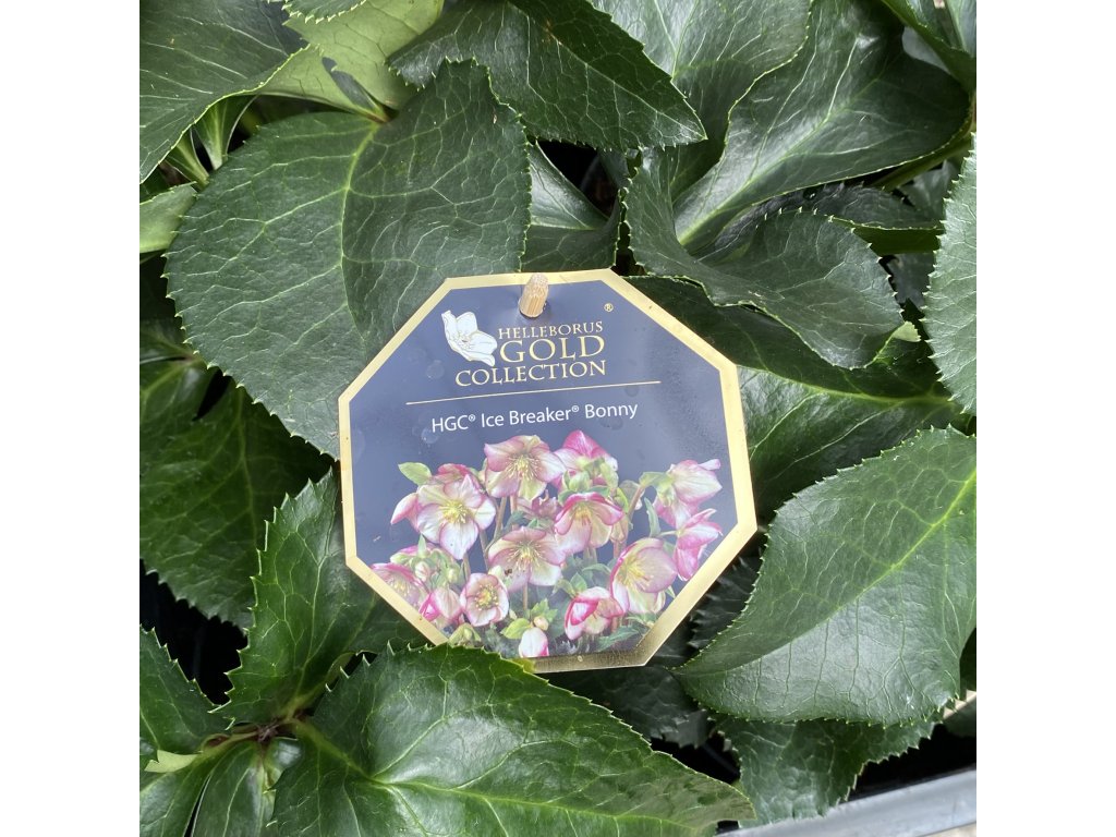 Helleborus hybr. 'Ice N´ Breaker Bonny' je atraktivní čemeřice s elegantními kvete velmi brzy – zpravidla od zimy do časného jara. Květy jsou krémově až jemně zelenavé s růžovým lemováním a postupně získávají sytější odstíny, barve se během kvetení může měnit, rostlina kvete bohatě i v chladném období a díky stálezeleným, kožovitým listům je okrasná po celý rok.