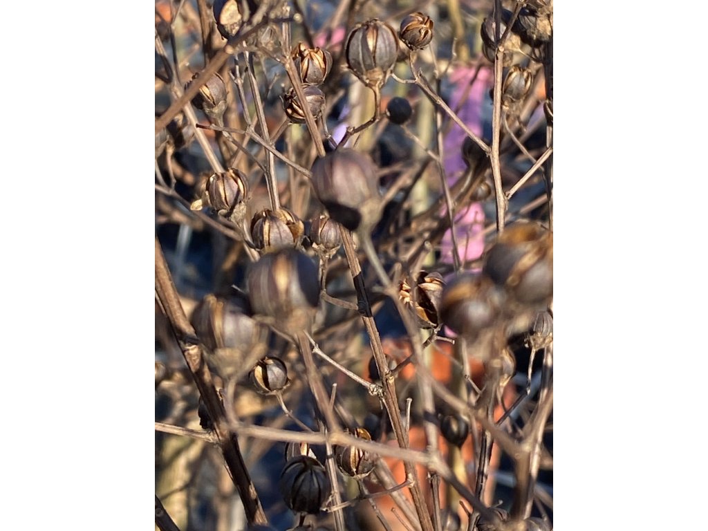 Lagerstroemia indica ‘Pink Velour’ je okrasná listnatá dřevina s robustním, vztyčeným habitusem, která může být pěstována jako velký keř nebo malý strom. V dospělosti ve volné půdě dorůstá obvykle 2–4 m na výšku a šířku podle stanoviště a řezů. Jehličnaté růžově-fialové květy se objevují v bohatých latách od léta až do prvních mrazů a vytvářejí výrazný barevný efekt v zahradě. Listy se na jaře objevují tmavě vínově-červené, v létě tmavnou do zelené a na podzim mohou znovu ztmavnout nebo zčervenat, což dodává rostlině atraktivní sezónní vzhled. Borka u starších jedinců šupinatí a odlupuje se, což přidává zimní texturu i bez listů či květů.