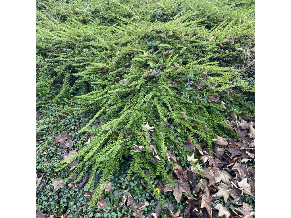 Lonicera nitida 'Maigrun' - zimolez lesklý je atraktivní stálezelený keřík dorůstající výšky do 1 metru. Jeho větve jsou do stran rozložené a hustě olistěné drobnými, tmavozelenými a lesklými lístky. Tento druh je oblíbený pro svou schopnost dobře snášet tvarování, což ho činí ideálním pro vytváření nízkých živých plotů nebo jako půdní kryt v polostinných až stinných částech zahrady.