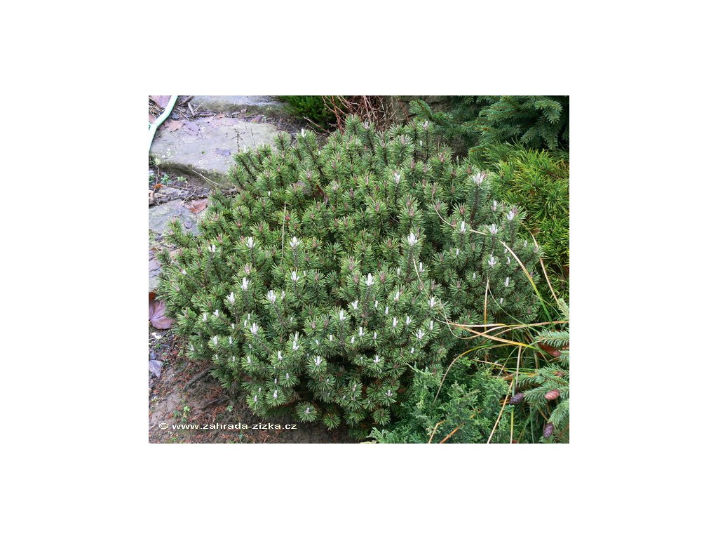 Tato zakrslá varieta borovice kleče je charakteristická svými krátkými jehlicemi a výraznými pupeny. Dorůstá výšky pouze kolem 50 cm, což z ní činí ideální rostlinu pro skalky, menší zahrady nebo pěstování v nádobách. Její kompaktní růst a tmavě zelené jehličí vytváří atraktivní vzhled po celý rok.
