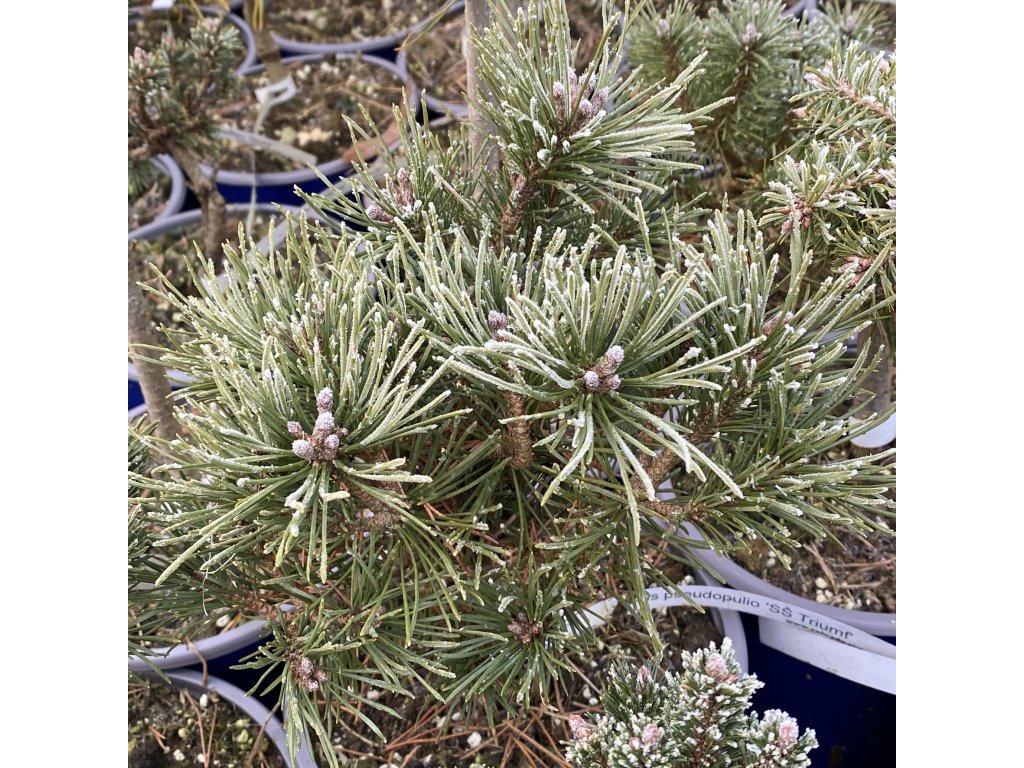 Pinus pseudopumilio ‘SŠ Triumf’ je kompaktní, dekorativní borovice rašelinná, vzniklá ve sbírkách jako selekce druhu Pinus pseudopumilio (blízký příbuzný borovice kleče). Tento kultivar má husté, tmavě zelené jehlice a nízký, často polštářovitý až nízko rozložený tvar, typický pro trpasličí borovicové formy registrované v českých koniferových sbírkách. Růst je velmi pomalý (jen několik cm ročně), takže si dlouhodobě zachovává kompaktní habitus.