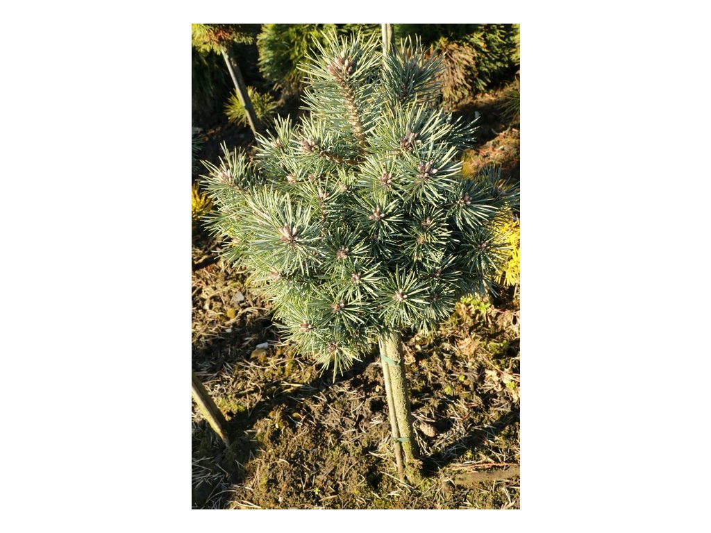 Pinus sylvestris 'Doone Valley' na kmínku je zakrslá forma borovice lesní s kuželovitým až keřovitým, mírně nepravidelným a stěsnaným vzrůstem. Vyniká intenzivně namodralým jehličím, které vytváří atraktivní kontrast v zahradě. Roubovaná na kmínek poskytuje zajímavý architektonický prvek, ideální pro menší zahrady, skalky nebo nádoby na terasách.