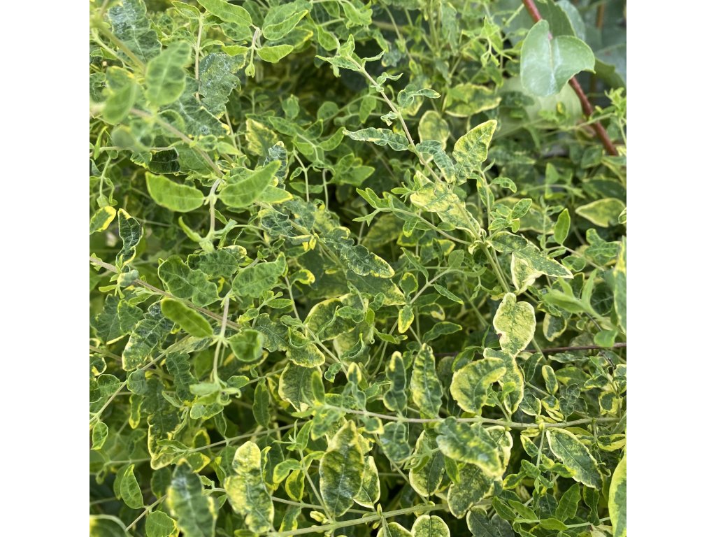 Symphoricarpos orbiculatus 'Variegatus' je atraktivní opadavý keř s dekorativními panašovanými listy. Zelené oválné listy s krémově bílým lemem zaujmou od jara do podzimu, kdy se keř navíc zdobí drobnými růžovými květy. Na podzim dozrávají dekorativní purpurové bobule, které mohou na větvích přetrvat i v zimě a lákají ptactvo. Keř roste kompaktně do výšky kolem 1–1,5 m, je nenáročný a vhodný jak do volně rostoucích, tak stříhaných živých plotů.